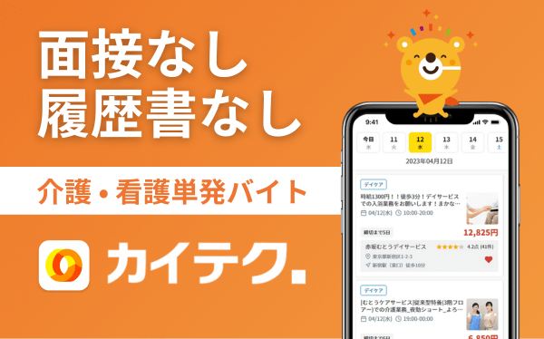 カイテクは、介護施設の求人が多いです。介護士さん向けの求人も多数出ています。日常生活援助のみの求人も多く、医療行為が苦手な方にもおすすめです。