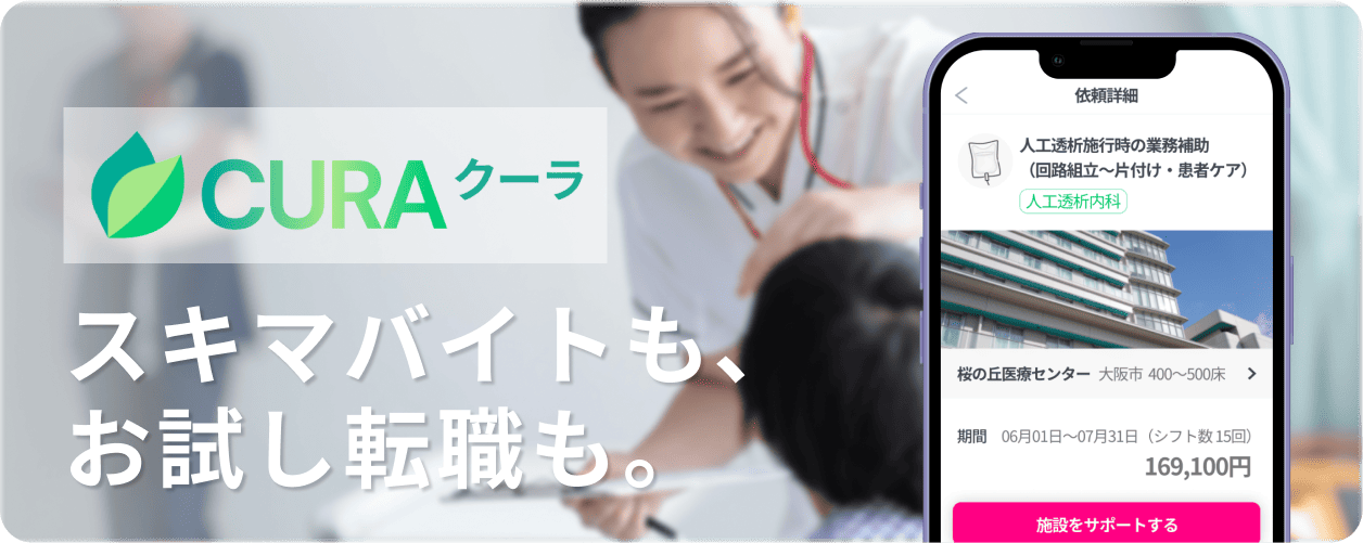 今までは、フルタイムしか募集してなかった病院でもバイトできるのがクーラ(CURA)の魅力です。