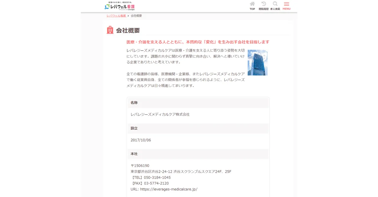 レバウェル看護 ( 旧 看護のお仕事 )・ 運営会社