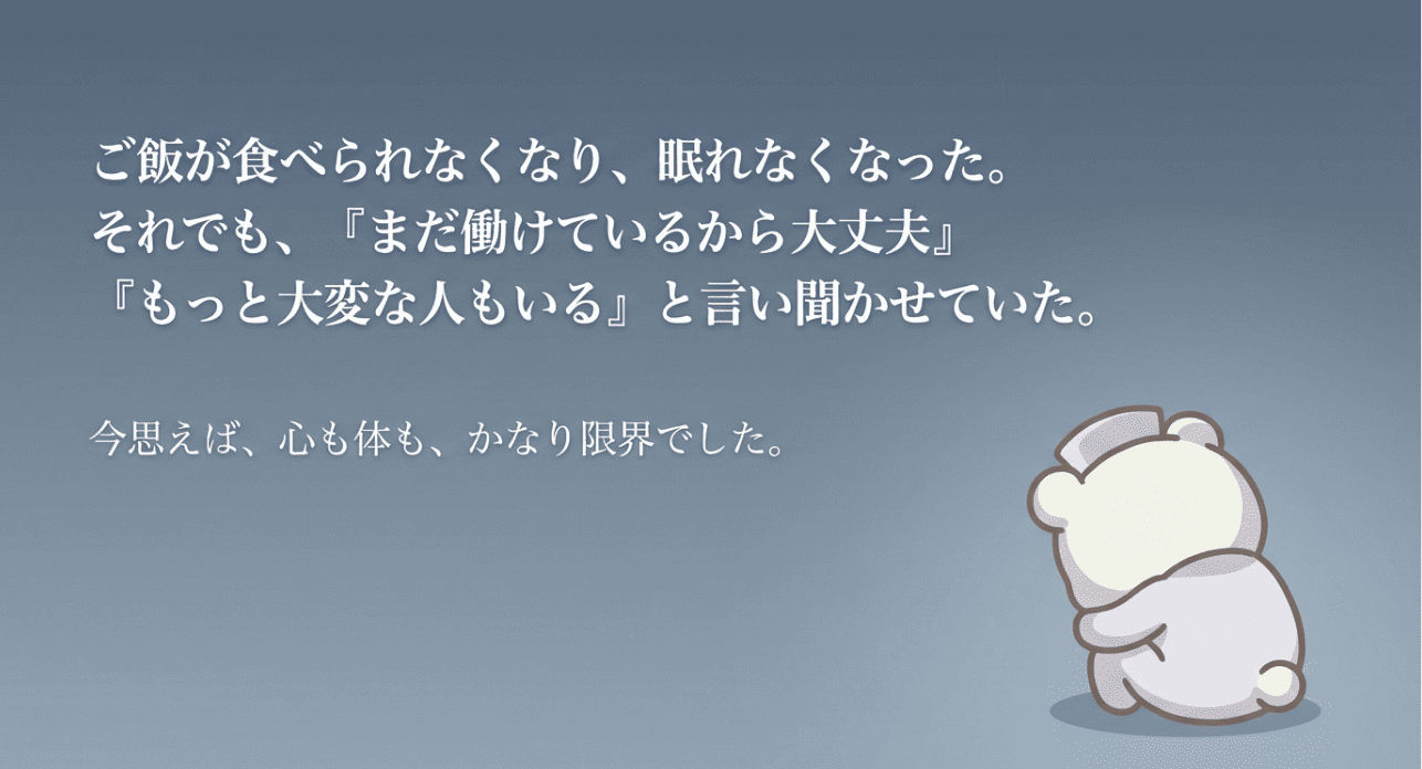 今思えば、心も体も、かなり限界だったと思います。